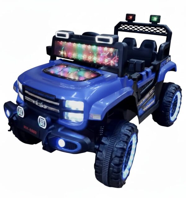 Lighting: Equipped with LED lights on the front and rear wheels, as well as light bars above the windshield and roof for a vibrant look.